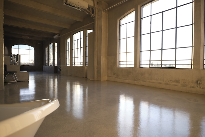 Studio West is our dual-look studio: dark and light grey walls that have great light exposure from West. Its raw textures and shiny epoxy floor make this studio beautiful and unique.